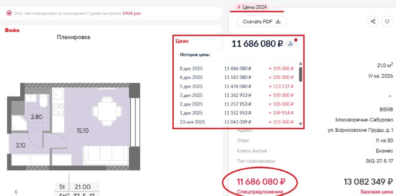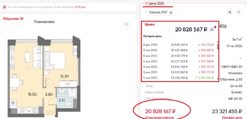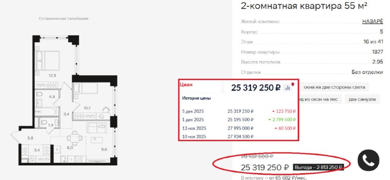 На квартиры в проектах «Вейв», «Обручева 30», «Лучи», «Зиларт», «Парксайд» и «Дмитровское небо» рекламируют возврат к ценам прошлого года до конца декабря.