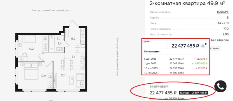 Смотрим реальные скидки в проекте «Назаре» ✍️ В «Назаре» - ЖК бизнес-класса в Богородском от «Мангазеи» - в декабре действует скидка до 20%. Цены снижены только на выделенный пул квартир при 100% оплате или несубсидированной ипотеке. 👉 Скидки есть только на двушки, но цены дейс